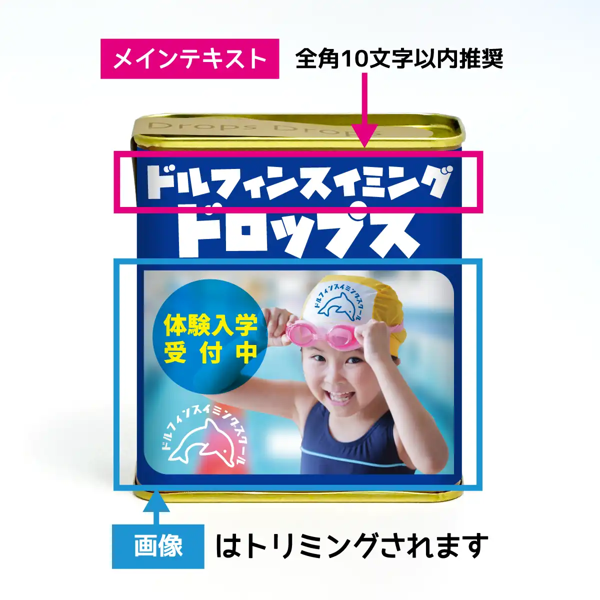 文字や写真を入れるだけでお手軽にオリジナル 缶ドロップが作成できます