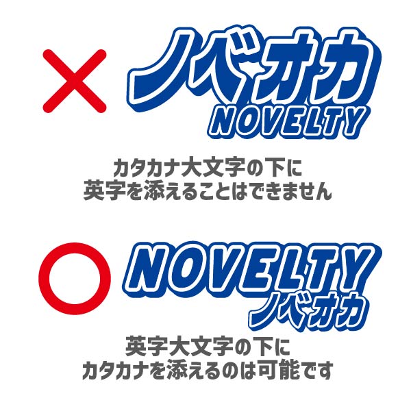 - (1) ノベルティのお菓子屋さんで使用可能な入稿データは、上段のロゴのみとなります。