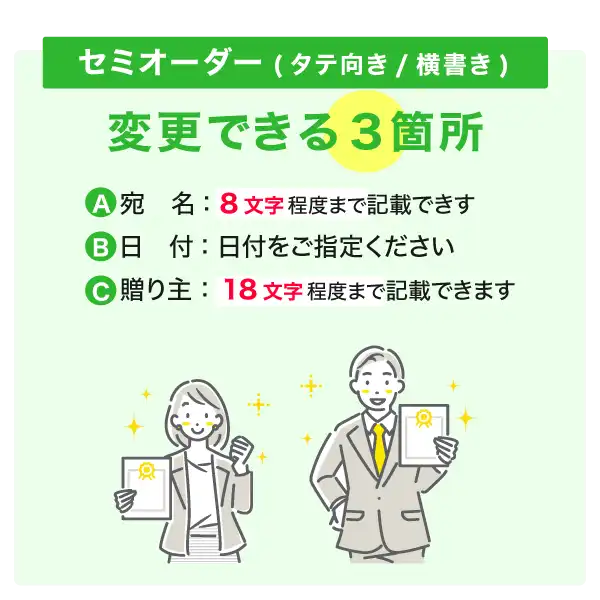 「宛名」「日付」「贈り主」入力欄に、それぞれ入力してください。